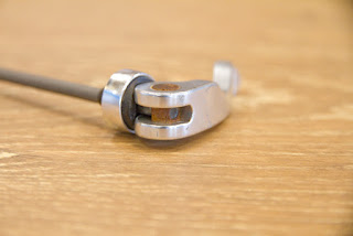 このタイプは「密閉カム」と呼ばれる固定のための軸が外気に晒されないようになっているのが特徴。ホイールメーカーの純正品は総じてこのタイプが多いですね。密閉カムタイプのレバーはボテっとした質感になる事が多いのですが、上手くまとめていると思います。