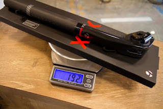 サドルを固定する部分をヘッドと言いますが、一般的なカーボンシートポストはこの部分だけアルミやスチールを用いているため、重量がかさみます。反面、XXX Lite Seat Postはシートポスト本体は全てカーボンで成型しているため、重量差が生じている訳です。(厳密にはサドルレールを固定するスモールパーツのみ金属を使用しています。)