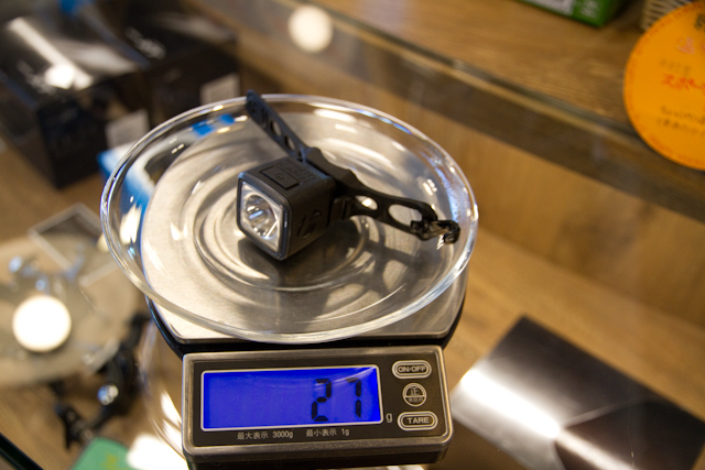 Flare R Cityの重量を計測してみました。結果は27グラム。ちなみにFlare Rは59グラム(台座含む)でした。ヒルクライムバイクなど、軽量バイクを目指している方にも、使えるアイテムです。