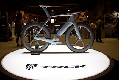 このバイクは…?と思わず息を飲んでしまったほど先進的なデザインのバイクが飛び込んできました!このバイクはTREKが「未来のバイク」をデザインしたコンセプトモデルです。おおよそ10年後、自転車専用の高速道路が普及した街で通勤する為のFast Commuter(ファストコミューター)というタイプの自転車だそうです。