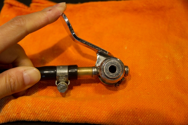 ②ロック機構レバーが横向きに付いている&長いので