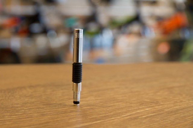 その名も「ラバー付きバルブエクステンダー」先にあげた対策2が最初から施されたようなアイテムとなっています。バルブ外径にラバーをあわせるよう、ラバーの入っている部分の本体はくびれています。全面がラバーコートされているわけではないので、ホイールとバルブが接触する部分にこのラバーがくるように、長さを決めてあげる必要があります。