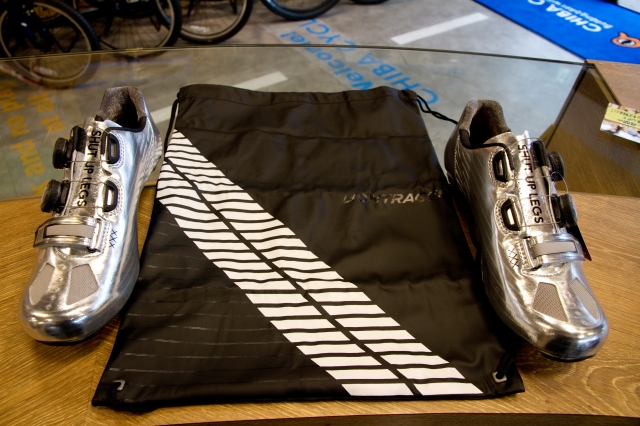 サイクリングアイテムの持ち運びに便利なシューズバッグ付き。ペラペラではなく、上質な仕上がりです。