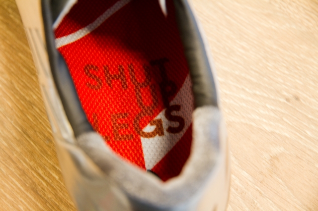 インソールには使用者のモチベーションを高める「SHUT UP LEGS!」の文字が…。