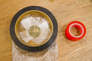サイズが分かるように500円玉との比較写真です。これならサドルバッグのスペースを無駄に占有しませんよね。