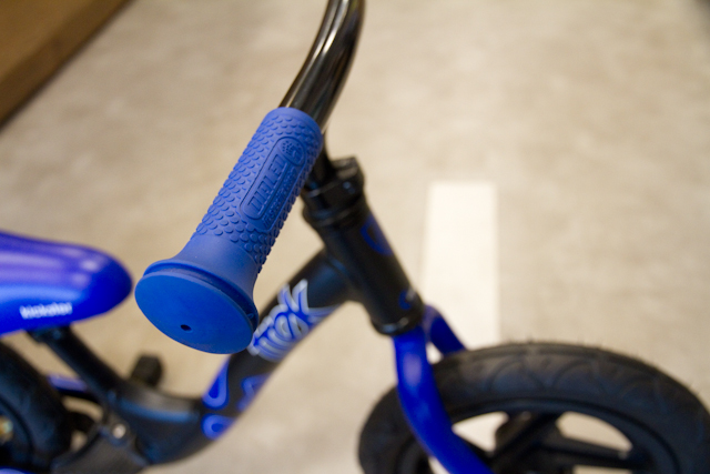 グリップはシンプルながら、外側につばを設けることで、お子様の手がすっぽ抜けることがないようにしています。ハンドルバーの高さなどを簡易調整できるので、成長に合わせてバイクポジションを見直すことも可能になっています。