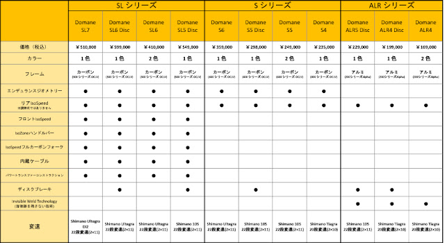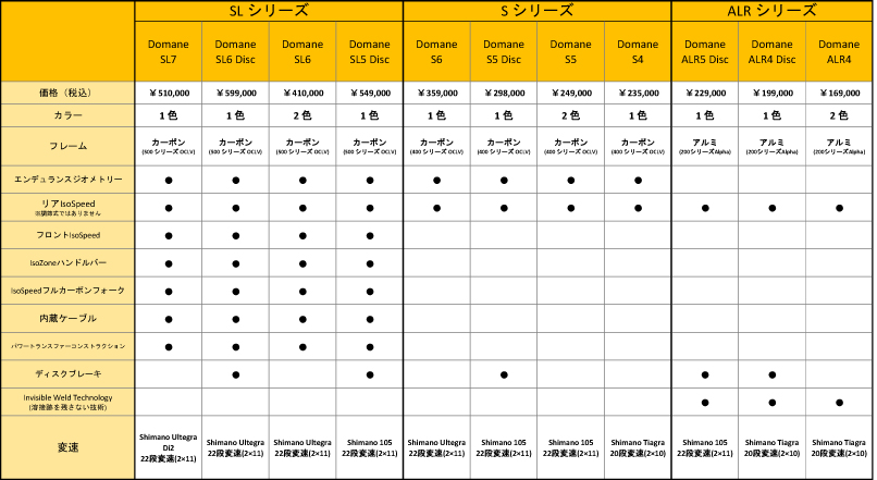 新型Domane各モデルで異なる装備・特徴が一目でわかります!