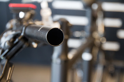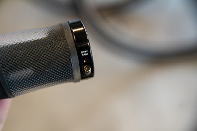 実はこのエラストマーがグリップと相互に作用してグリップの衝撃吸収力を高める効果を生みます!また、写真をご覧いただくと分かりますが、エラストマーの形状に合わせてハンドルを特殊加工する事で、ライダーが握りやすいハンドルバー形状を維持しつつ内部にエラストマーを追加しているんです。