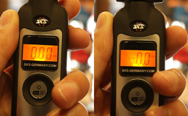 空気圧計は素早く一発測定ができ、ライド前の空気圧チェックが楽になります。