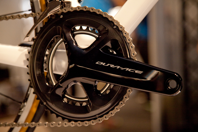ワイヤー/電動変速共通のパーツは、より軽量化しました。高価なチタンを用いたスプロケットは耐摩耗性という点でも優れています。クランクについても、重量シェイプはもちろん、ペダリング時に掛かるパワーを受け止めるアーム部分を改良したとの事。