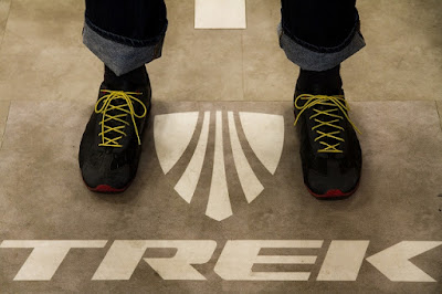 今日は手軽にできる「カスタム」について少しご紹介しましょう。写真はPodium(ポディウム/13,900円)というBontrager製の軽量なシューズです。ビンディングなどの機能は無いですが、履き心地がいいので当店スタッフも愛用しているもの。私(東)もその一人ですが、「ある事」をしてほかのスタッフとは違うシューズに仕上げました!