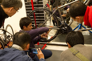 その後、作業実演を行います。チェーンの取り付けをする際は単純な構造だけに