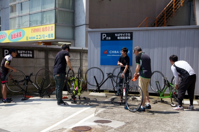 ホイールの脱着の練習をしています。