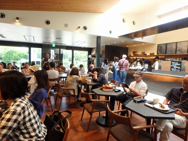リニューアルした、スターバックスへ。希少なコーヒー豆を取り扱う「スターバックス・リザーブ」という専用カウンターを増設したとか。
