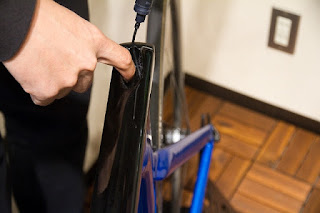 シートポストに塗り込んでいきます。シートポストサイドの面はこれまで通り、Finish Lineで。
