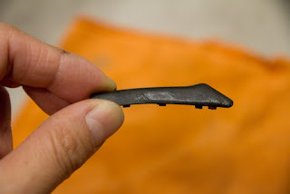 こうすると一目瞭然。かなりの仕事をしているパーツだという事がお判りでしょうか?ご自身のバイクがシマノ11速コンポorTIAGRA(4700シリーズ)なのに「このパーツ見当たらない」という方は、脱落して無くなっています。スキッドプレートという緩衝材が無い今、変速機がチェーンと擦れる度に摩耗する状態です。すぐに新しいものを取り付けましょう!