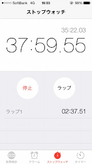 iPhoneのストップウォッチ機能で計測
