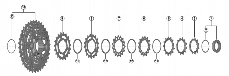 CS-R8100系、12速のスプロケットの展開図です。