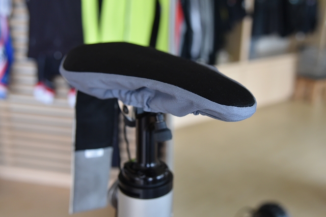 サドルに何やらカバーのようなものがかかっていますね。