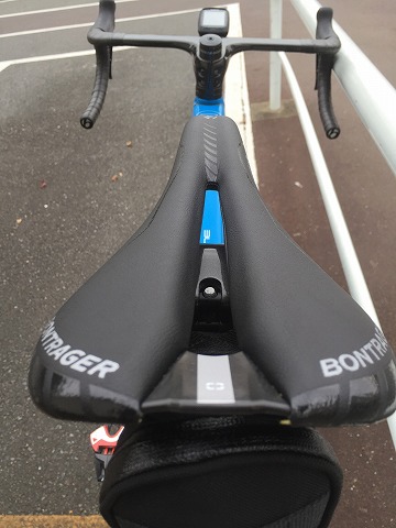 こうして後ろから見るとサドル中心部分の溝がかなり大胆に空いていますね。