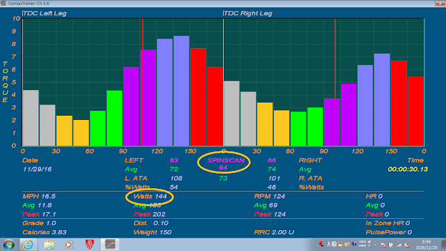 2はペダリング効率64 ワット数144 ペダリング効率こそ一緒ですが、ワット数が落ちているのが目に見えてわかります。