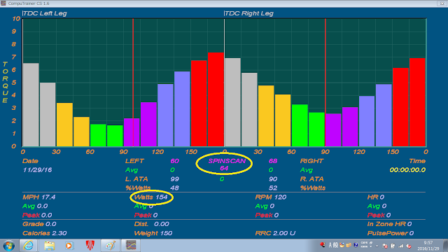 この状態でまずはペダリング効率やワット数(出力)を計測しました。
