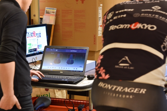 そして僕は今回「プレッシャーマッピング」という機材を使った、サドルに関する分析をしてもらいました。これはペダリングした際に、サドルにかかる圧力、加重範囲、バランスなどをリアルタイム解析できるプログラムです。先の2モデルを解析するとどのような違いが見えるのか楽しみです!