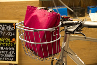 写真のトートバッグ(弁当やタオルが入っています)をバスケットに入れています。