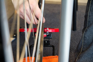ホイールを振れ取り台にセットし、開始!