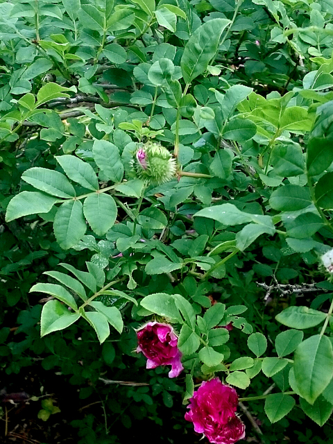 この十六夜バラ、つぼみが凄いんです。トゲだらけ!!