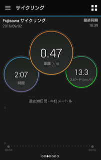 その日に走行した距離、時間、平均・最高速度などが表示され、