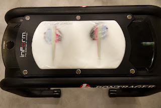 このように表と裏にシールが貼りつけられており、これが骨盤を測るための目印。