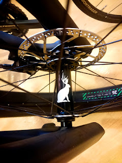ホイールのハブに鹿のような角の映えたうさぎのデカールが!