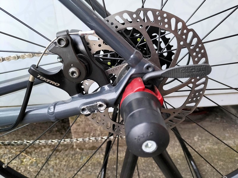 ブレーキはワイヤー式ディスクブレーキ。雨の日でもしっかりとした制動力を確保。